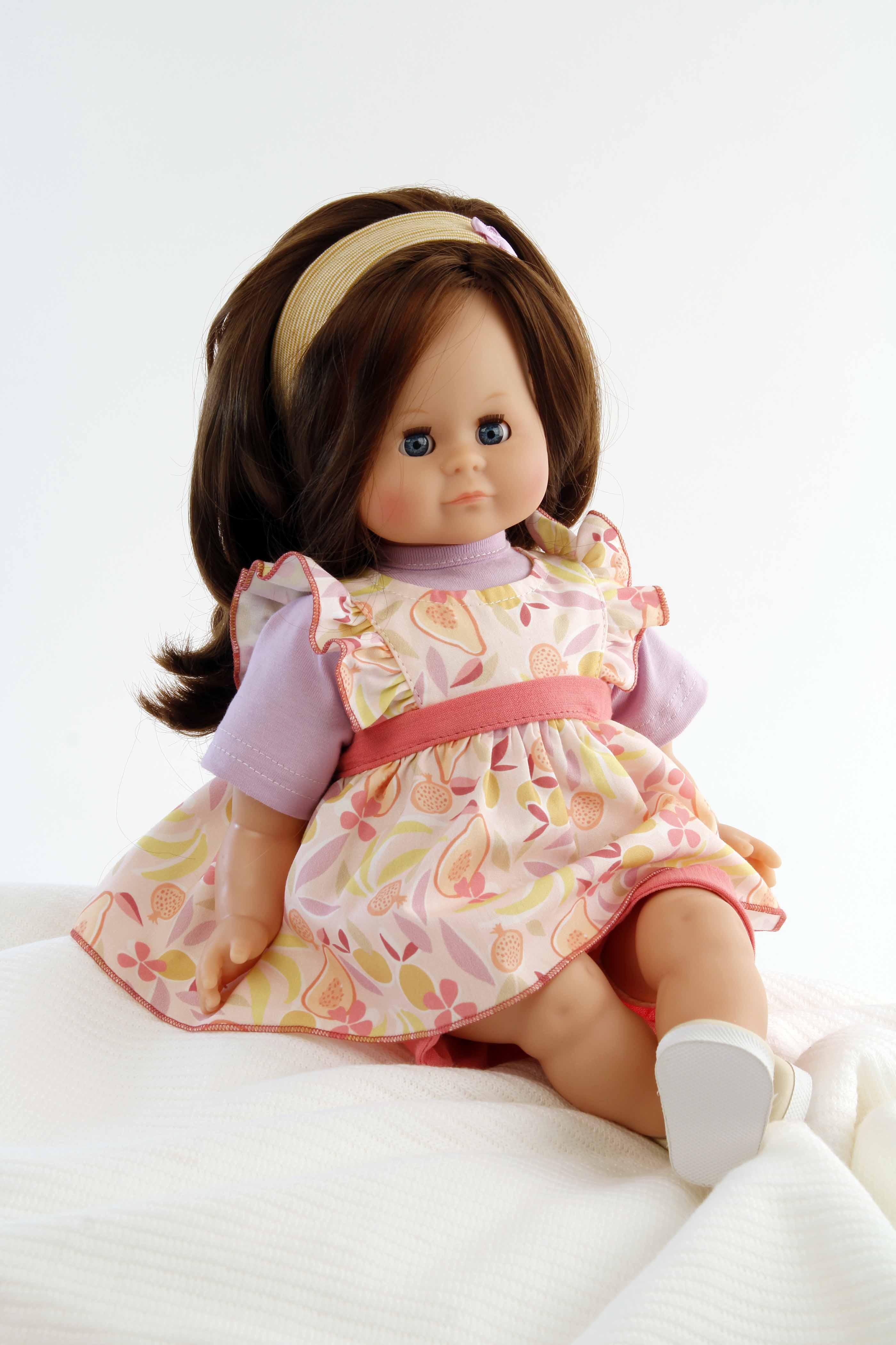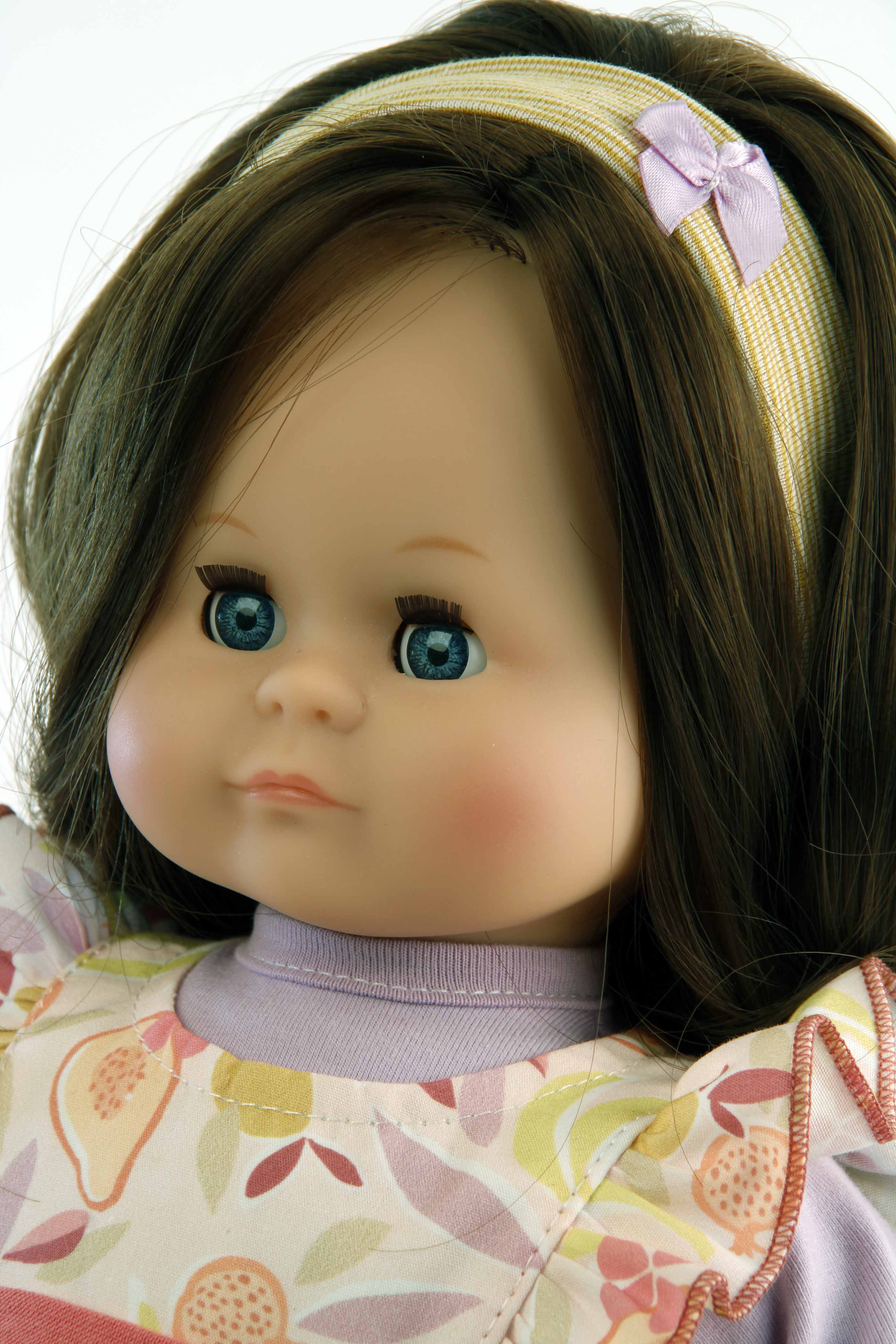 Puppe Schlummerle 37 cm braune Haare, blaue Schlafaugen, Kleidung Früchtchen