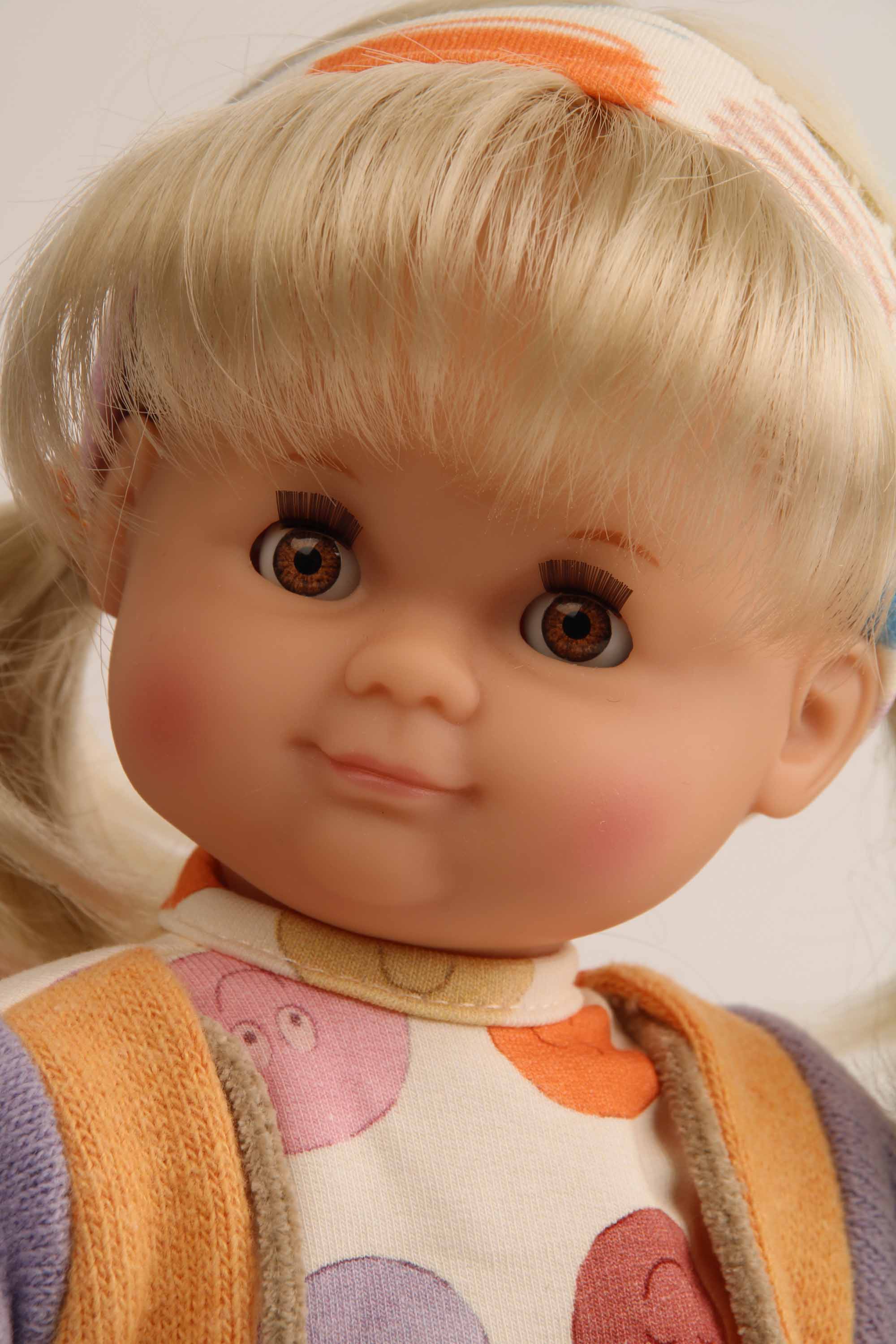 Puppe Schlummerle 32 cm blonde Haare, braune Schlafaugen, Smiley-Kleidung
