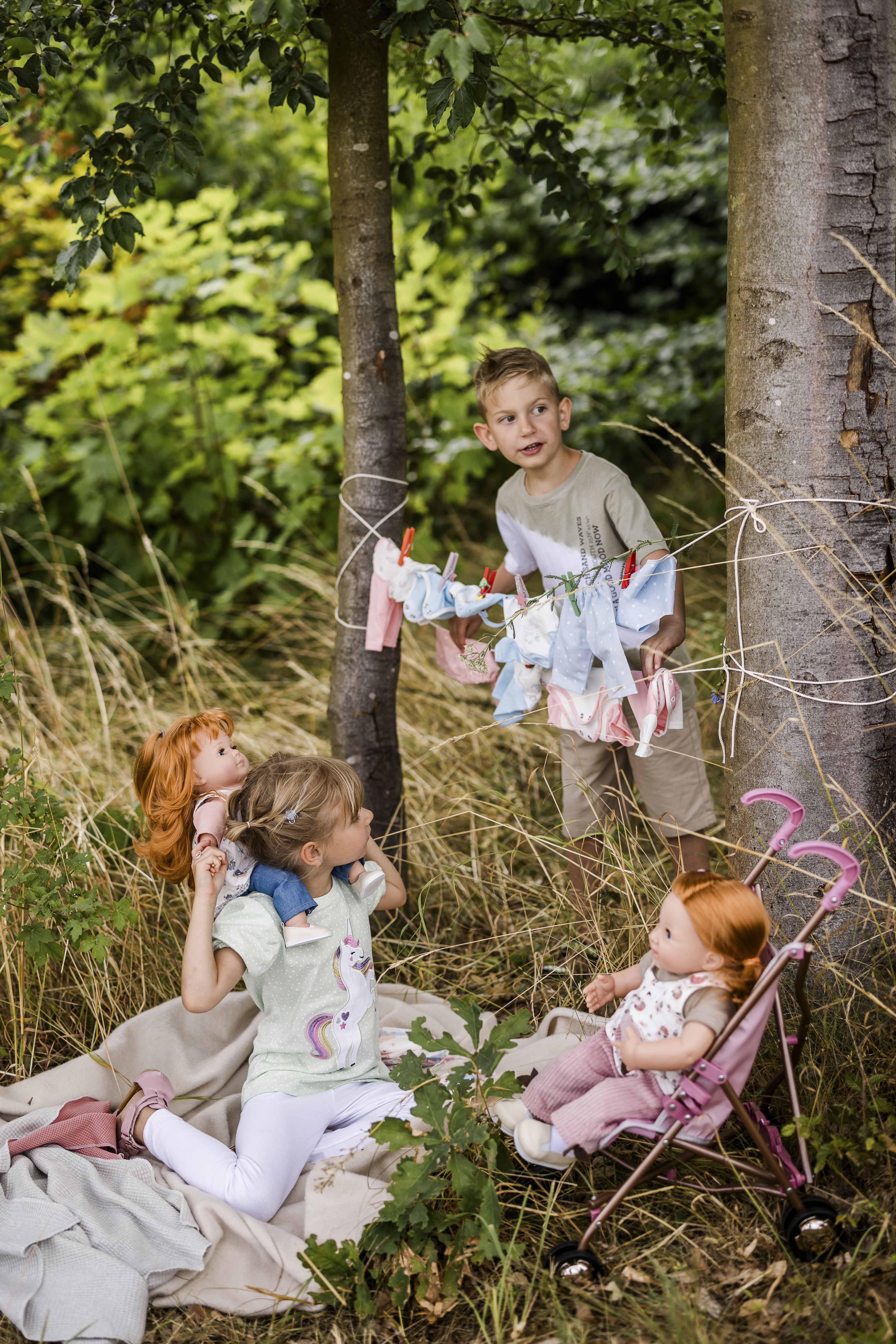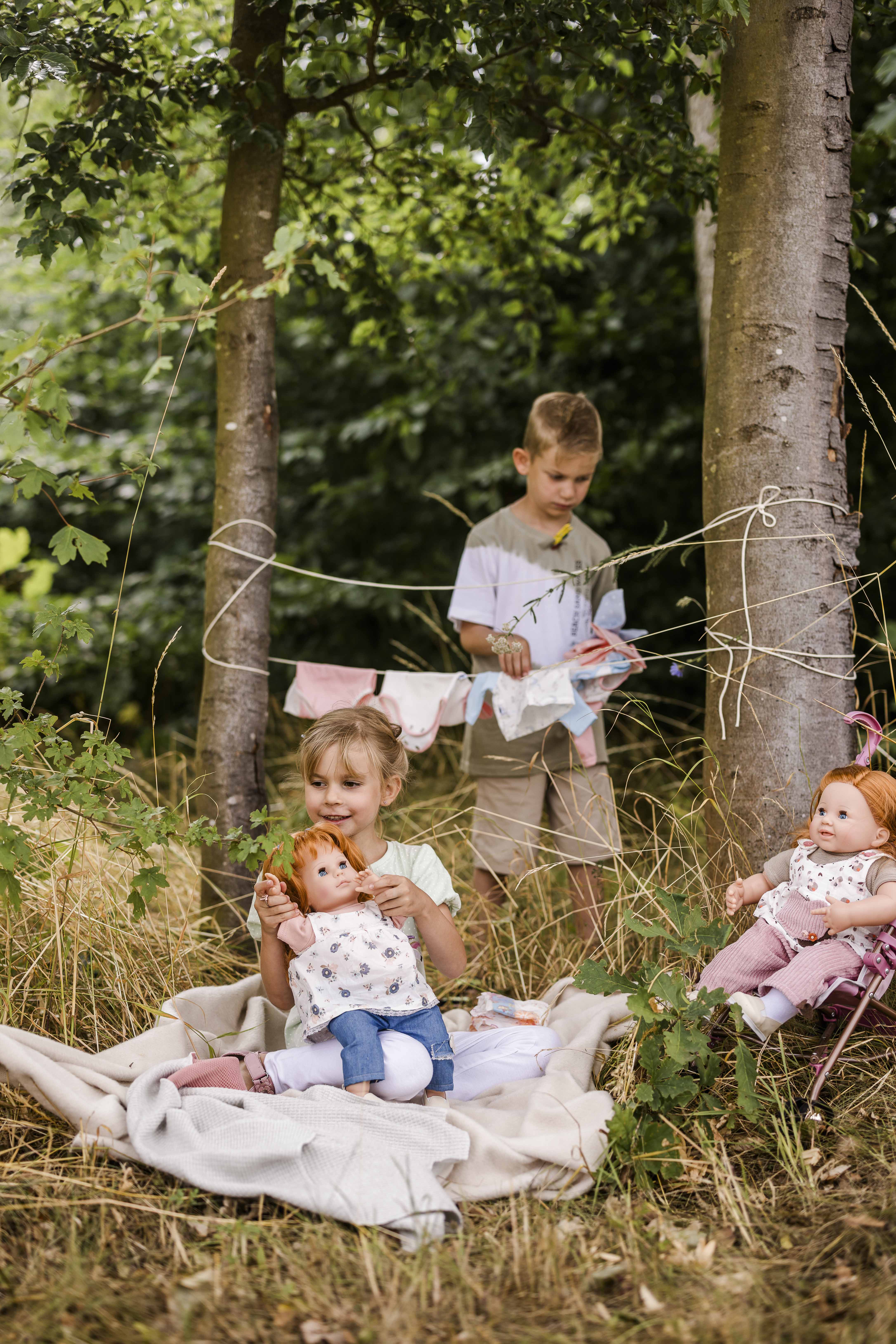 Heb mich hoch und nimm mich in deine Arme! Hanni, mit einer Größe von 45 cm, ist das perfekte Puppenkind zum Liebhaben für Kinder ab 36 Monaten. Ihr weicher Stoffkörper, die funkelnden Schlafaugen und der bunte Mix an Stoffen sorgen dafür, dass sie immer bereit ist für jede Menge Abenteuer! Die Arme, Beine und der Kopf von Hanni sind aus hochwertigem Vinyl gefertigt, während ihr kuschelweicher, samtiger Körper mit einem Granulatsäckchen im Po sie zu einem wahren Schatz zum Knuddeln und Verwöhnen macht. Das eingesteppte, kämmbare rote Haar lädt dazu ein, kreativ zu werden und Hanni nach Herzenslust zu frisieren. Ihre funkelnden blauen Schlafaugen sorgen dafür, dass sie auch wie ihre Puppenmutti am Abend schön einschlafen kann. Hanni trägt eine moderne Spielkleidung mit einer stylischen Jeanshose und einer süßen Blumentunika, die leicht an- und auszuziehen ist und bei 30 Grad gewaschen werden kann – für unbeschwerten Spielspaß! Jede Puppe wird mit viel Liebe und Sorgfalt in unserer eigenen Puppenmanufaktur in Rauenstein, Thüringen, hergestellt.