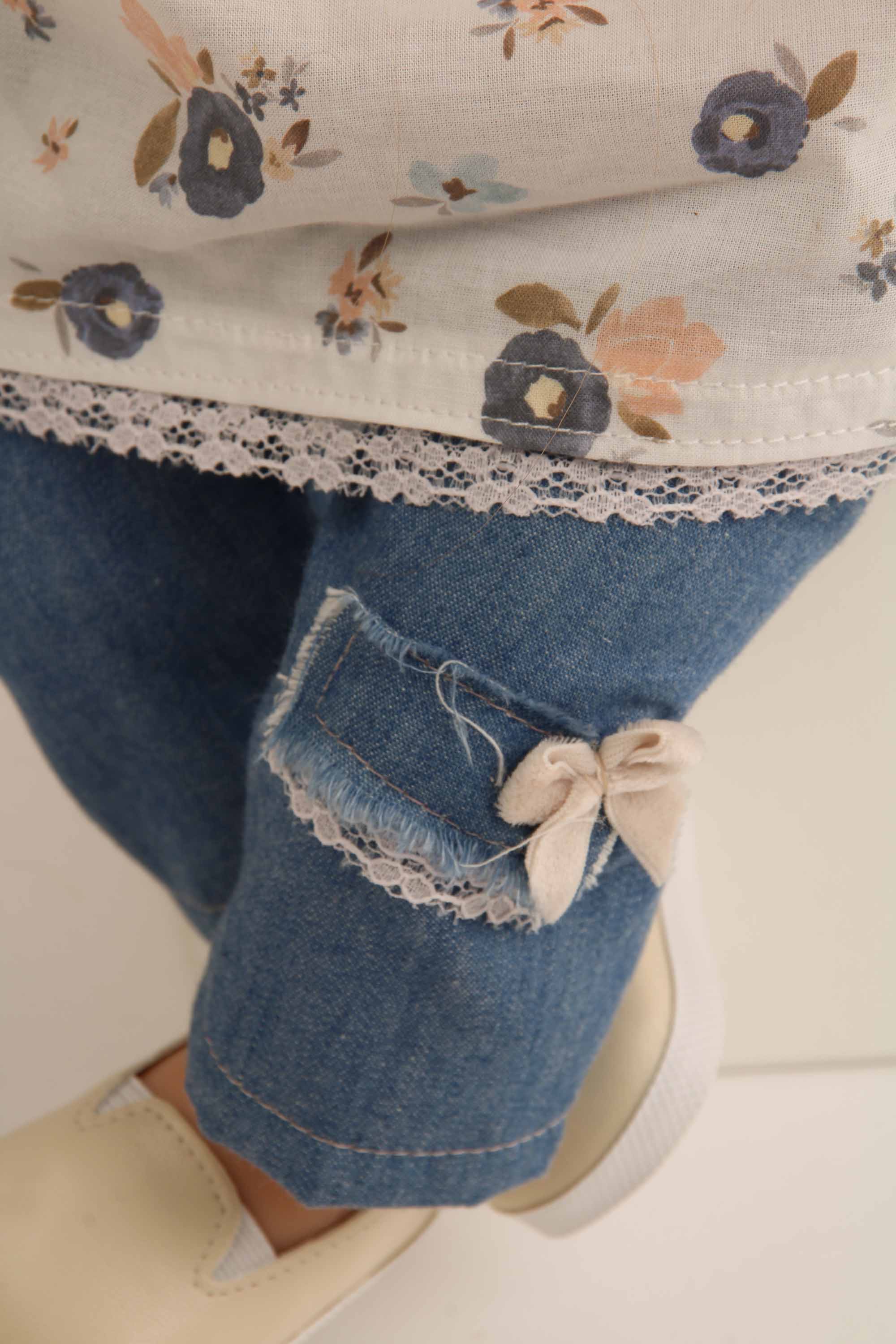 Puppe Hanni 45 cm rote Haare, blaue Schlafaugen, Jeanshose+ Blumenshirt