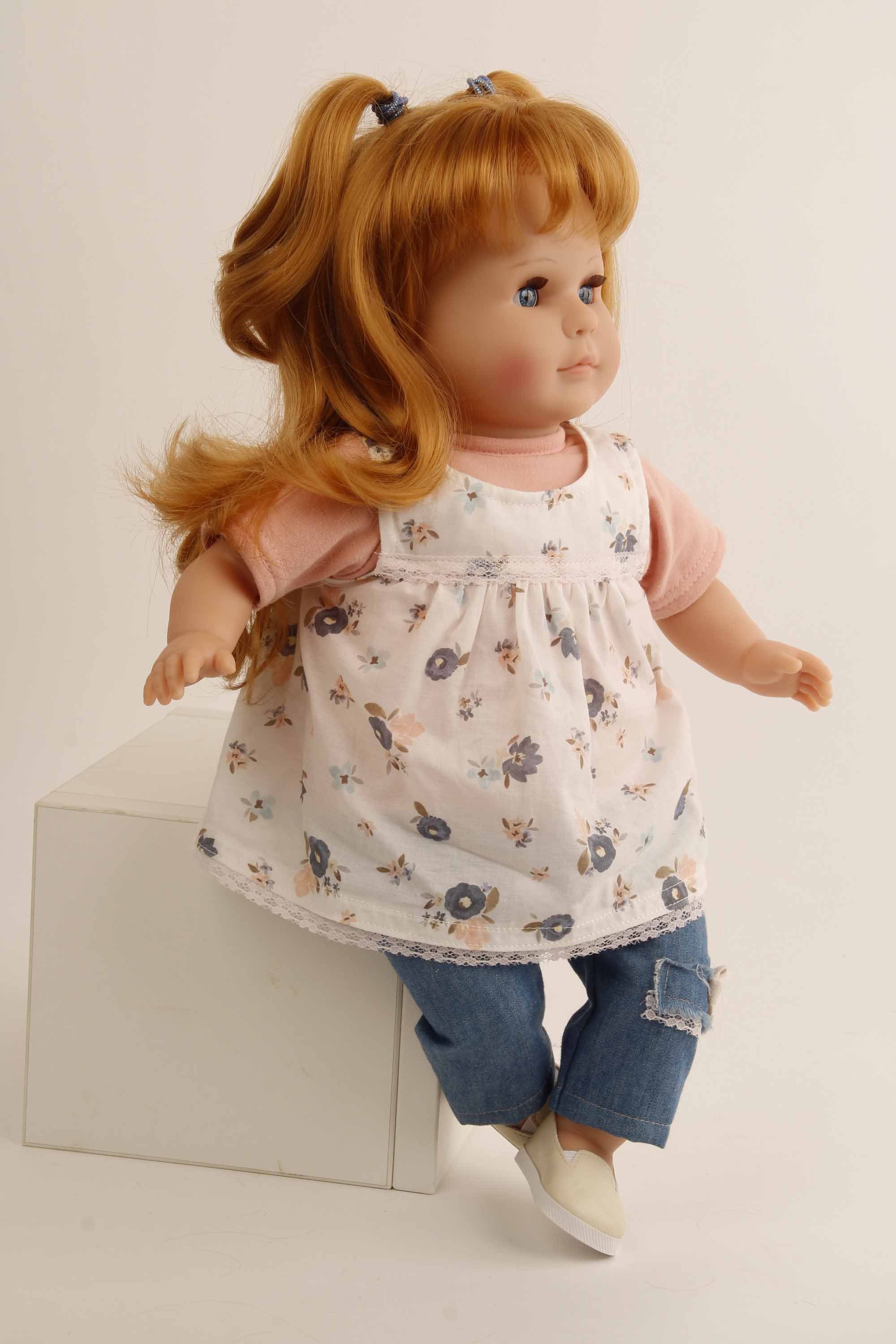 Produktinformationen "Puppe Hanni 45 cm rote Haare, blaue Schlafaugen, Jeanshose+ Blumenshirt"