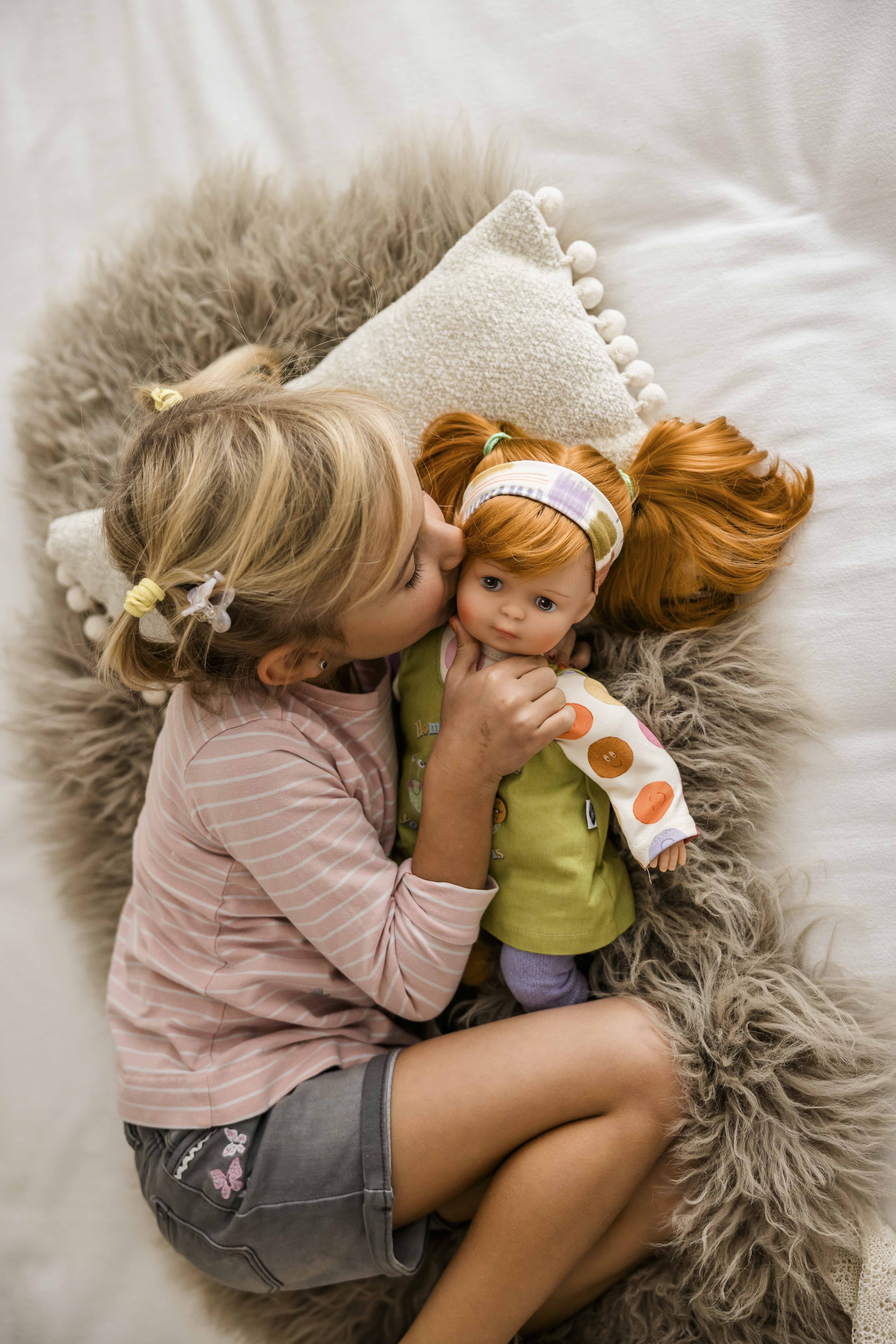 Entdecke die zauberhafte Puppe Strampelchen – ein einzigartiger Begleiter für kleine Abenteurer ab 36 Monaten. Mit ihrem weichen Stoffkörper und den handgemalten, neugierig schauenden Augen bringt Strampelchen Freude und Fantasie ins Spiel.