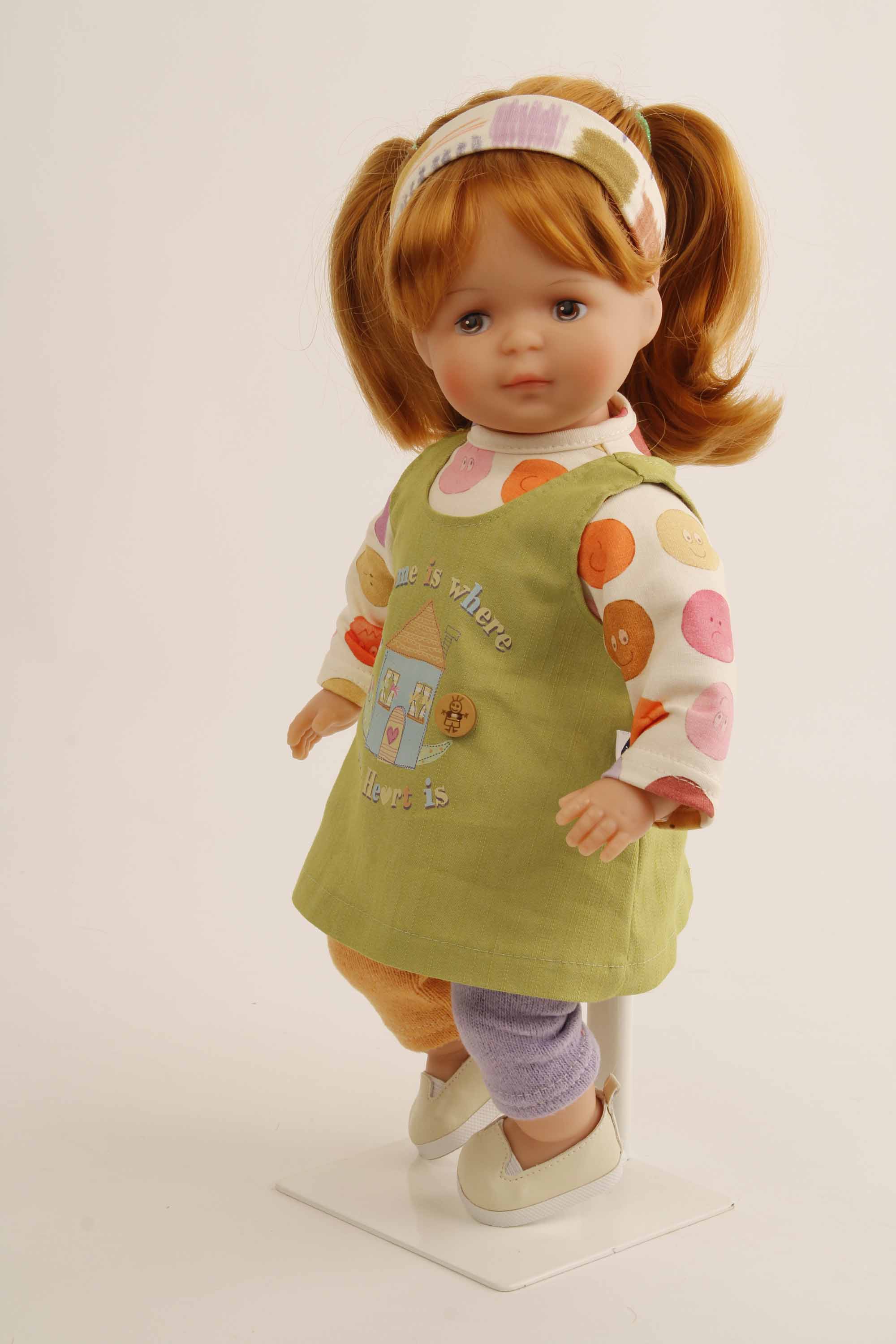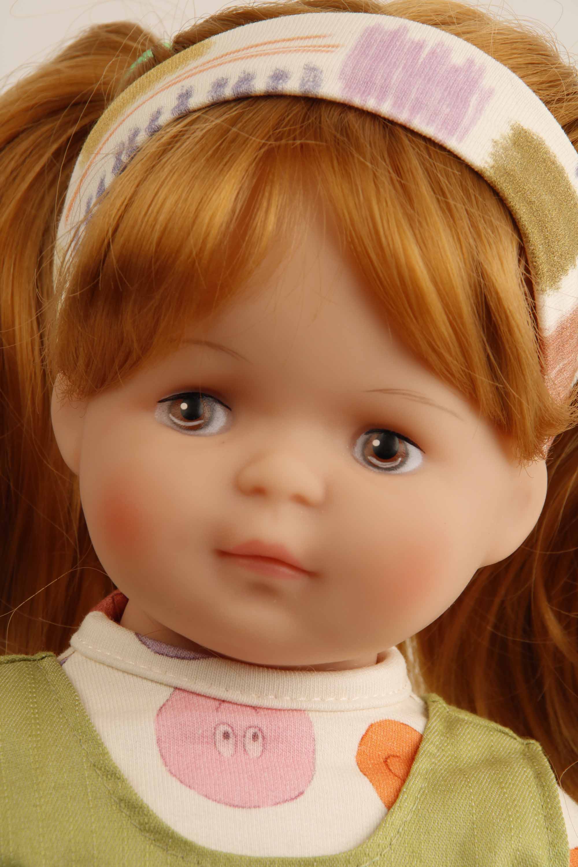 Produktinformationen "Puppe Strampelchen 37 rote Haare, braune Malaugen, Kledung Smiley"