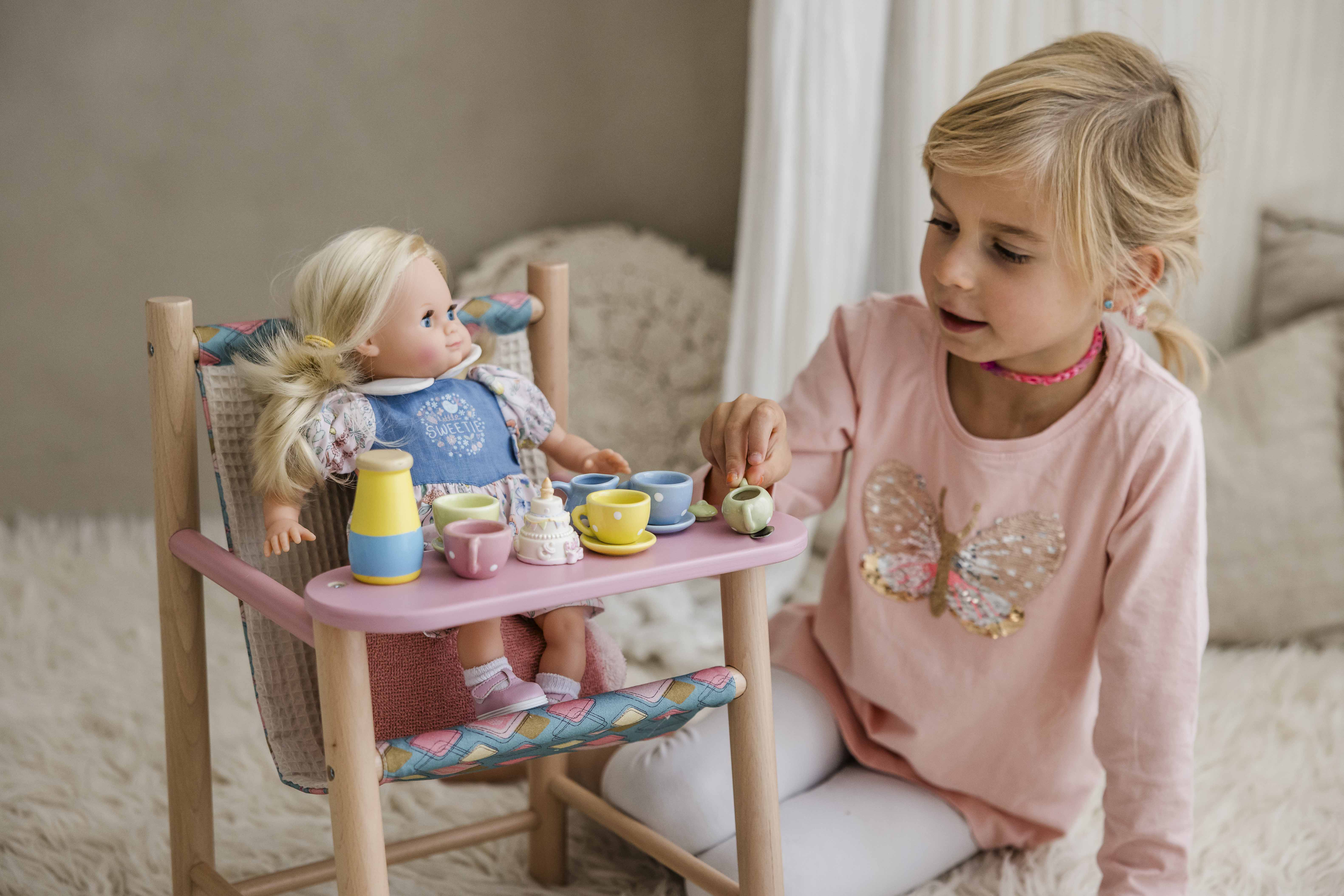 Unser Schlummerle, wer kennt es nicht, wohl eine der bekanntesten und beliebtesten Puppen weltweit. Du kannst sie durch ihren kuschligen Stoffkörper richtig liebhaben. Wie mit einer Freundin kannst du Frisuren und Outfits ausprobieren. Die Puppe wird in unserer eigenen Puppenmanufaktur in Rauenstein/Thüringen hergestellt. Arme, Beine und Kopf sind aus Vinyl, sie hat lustige blaue Schlafaugen, sowie strapazierfähige, kämmbare, eingesteppte braune Haare. Es trägt eine festliche Spielkleidung in rose mit Plauener Stickerei, diese ist leicht an- und ausziehbar und bei 30 Grad per Hand waschbar. Achtung: Nicht geeignet für Kinder unter 36 Monaten, da Kleinteile verschluckt werden können.