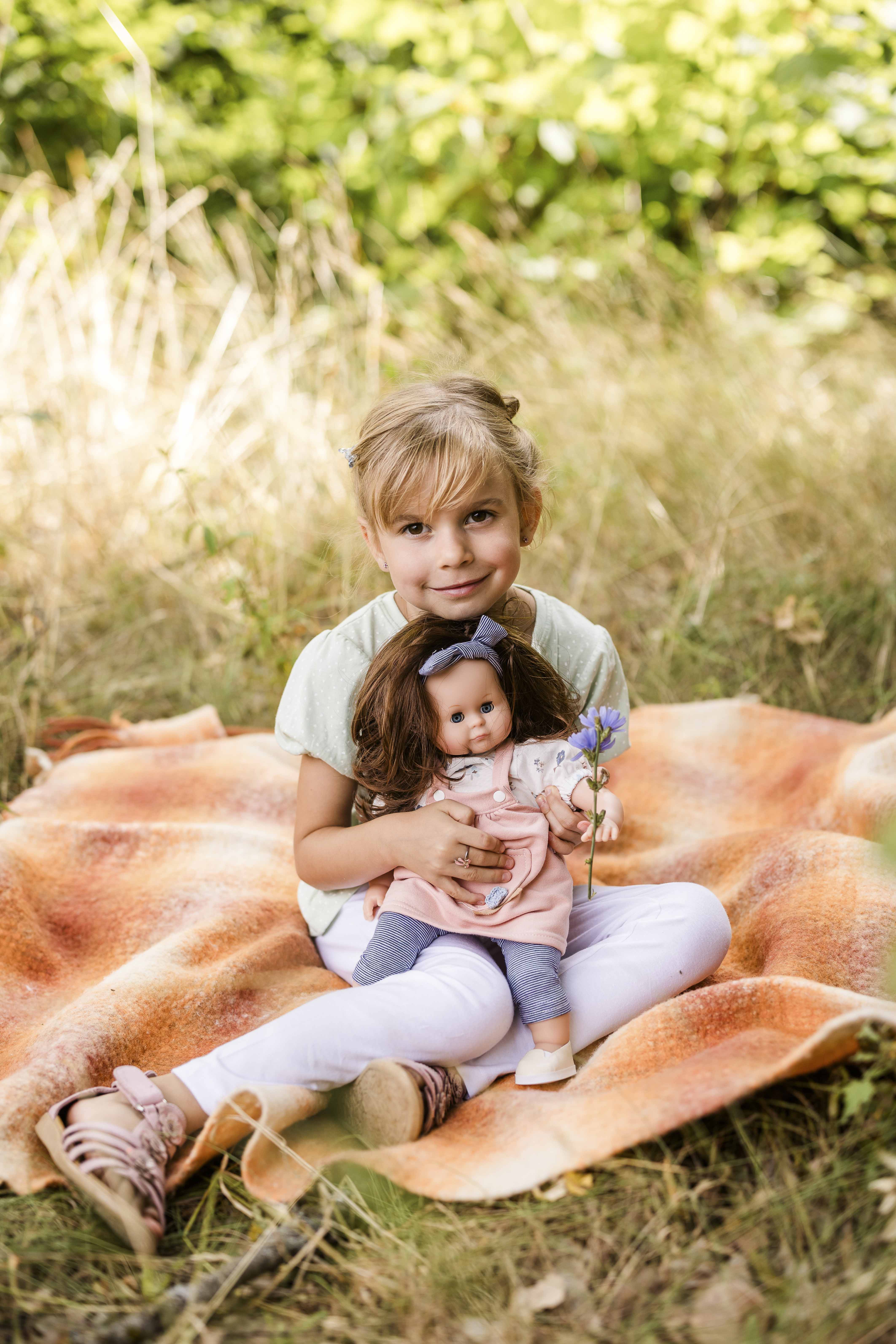 Lass uns gemeinsam den Tag verbringen. Schlummerle, eine Puppe mit unverwechselbarem Charakter, heute noch so beliebt wie damals. Arme, Beine und Kopf sind aus Vinyl, sie hat einen kuschelweichen Stoffkörper, funkelnde Schlafaugen und kämmbare, eingesteppte, blonde Haare. Sie trägt eine Spielkleidung mit Blumendruck in rose/bleu, diese ist leicht an- und ausziehbar und bei 30 Grad waschbar. Die Puppe ist in Rauenstein/Thüringen gefertigt. STICKEREI: Als besonderen Service bieten wir an, eine individuelle Widmung (z.B. Name und Geburtsdatum der Puppenmutti) mit einem kleinen Aufpreis auf den Puppenbauch zu sticken. Wenn Sie eine ganz persönliche Puppe für Ihr Kind möchten, dann geben Sie Ihre Wunschbestickung oben in die dafür vorgesehenen Felder ein. Achtung: nicht geeignet für Kinder unter 36 Monate, da Kleinteile verschluckt werden können.