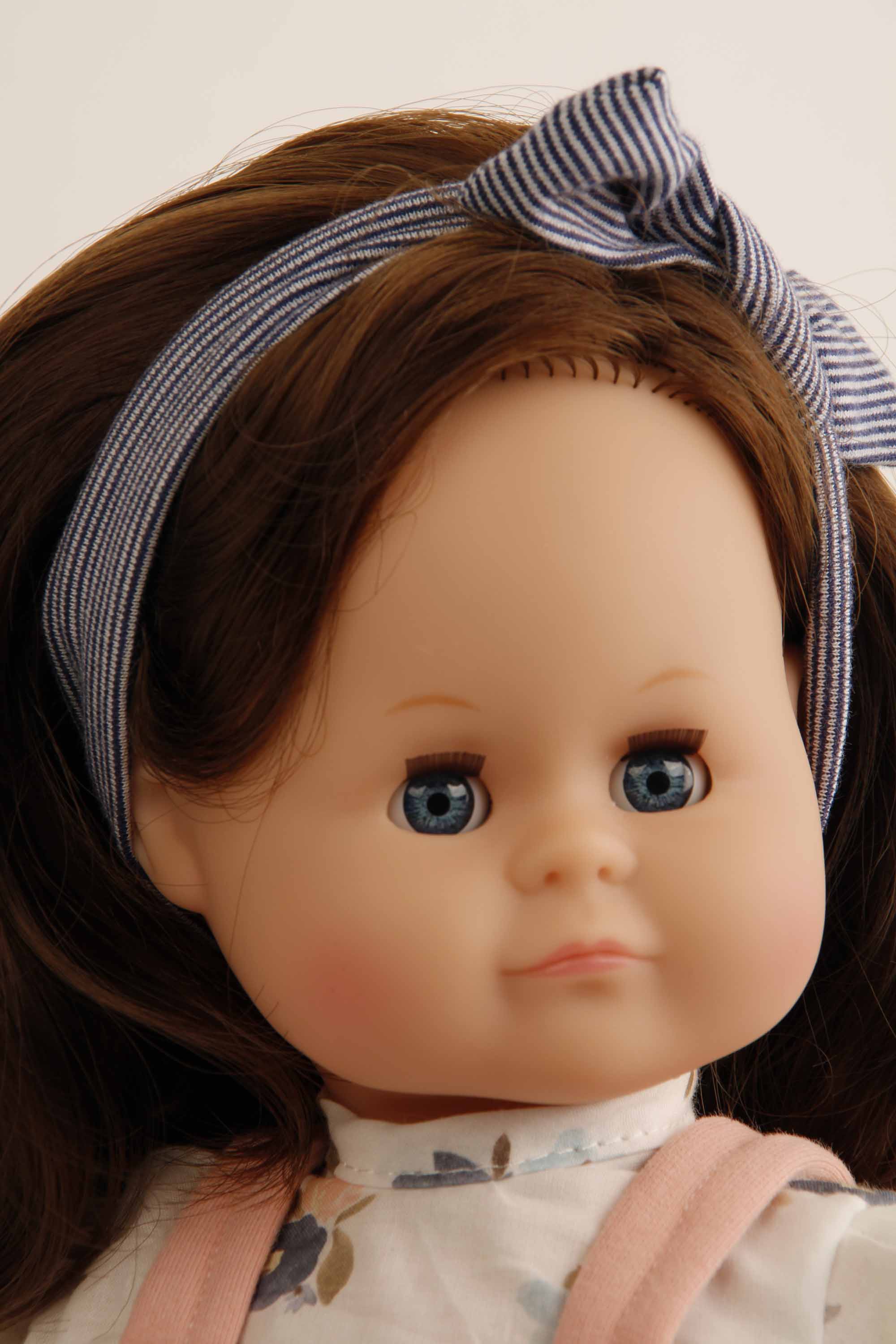 Produktinformationen "Puppe Schlummerle 37 cm braune Haare, blaue Schlafaugen, Kleidung rose/weiss/bleu"