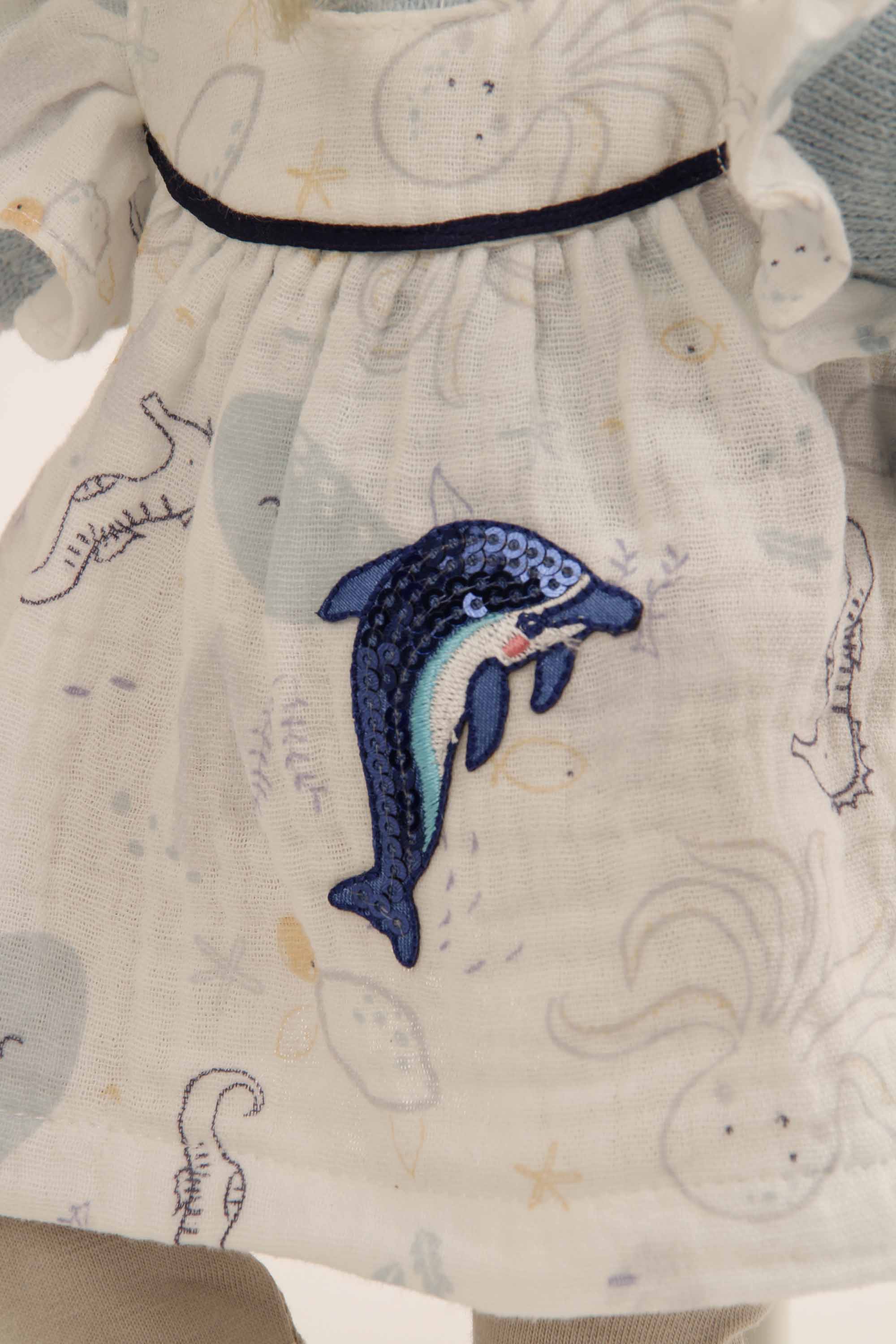 Puppe Schlummerle 32 cm blonde Haare, blaue Schlafaugen, Delphin-Kleidung