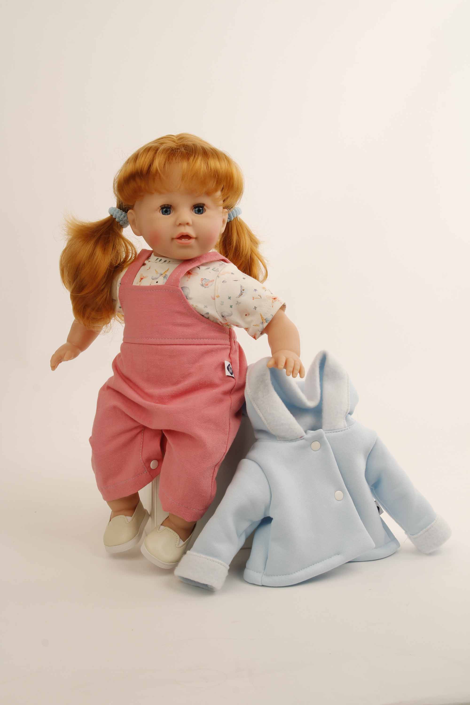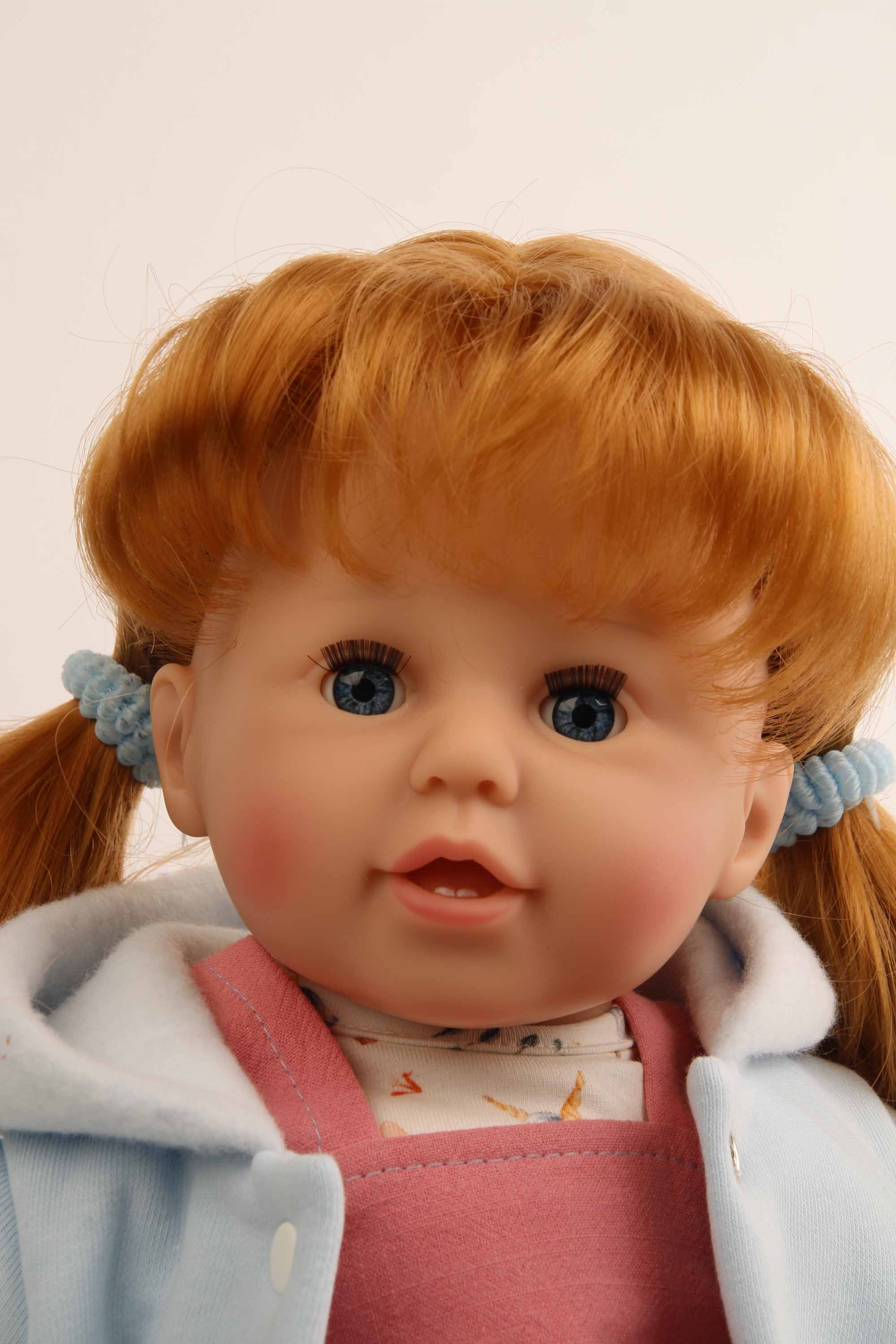 Puppe Susi 45 cm rote Haare, blaue Schlafaugen, Kleidung winterlich blau/rot