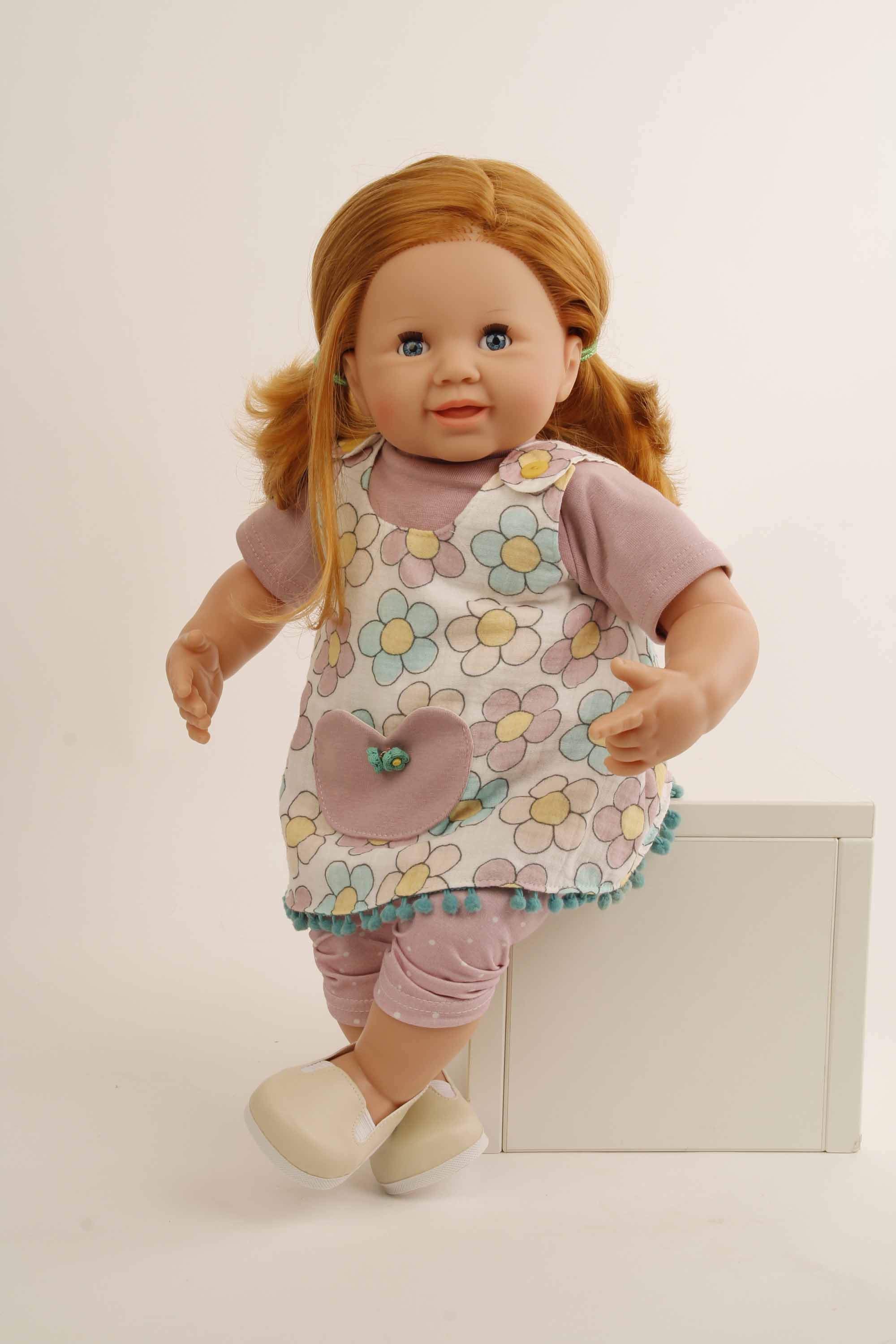 Puppe Klara 52 cm rote Haare, blaue Schlafaugen, Kleidung Flower