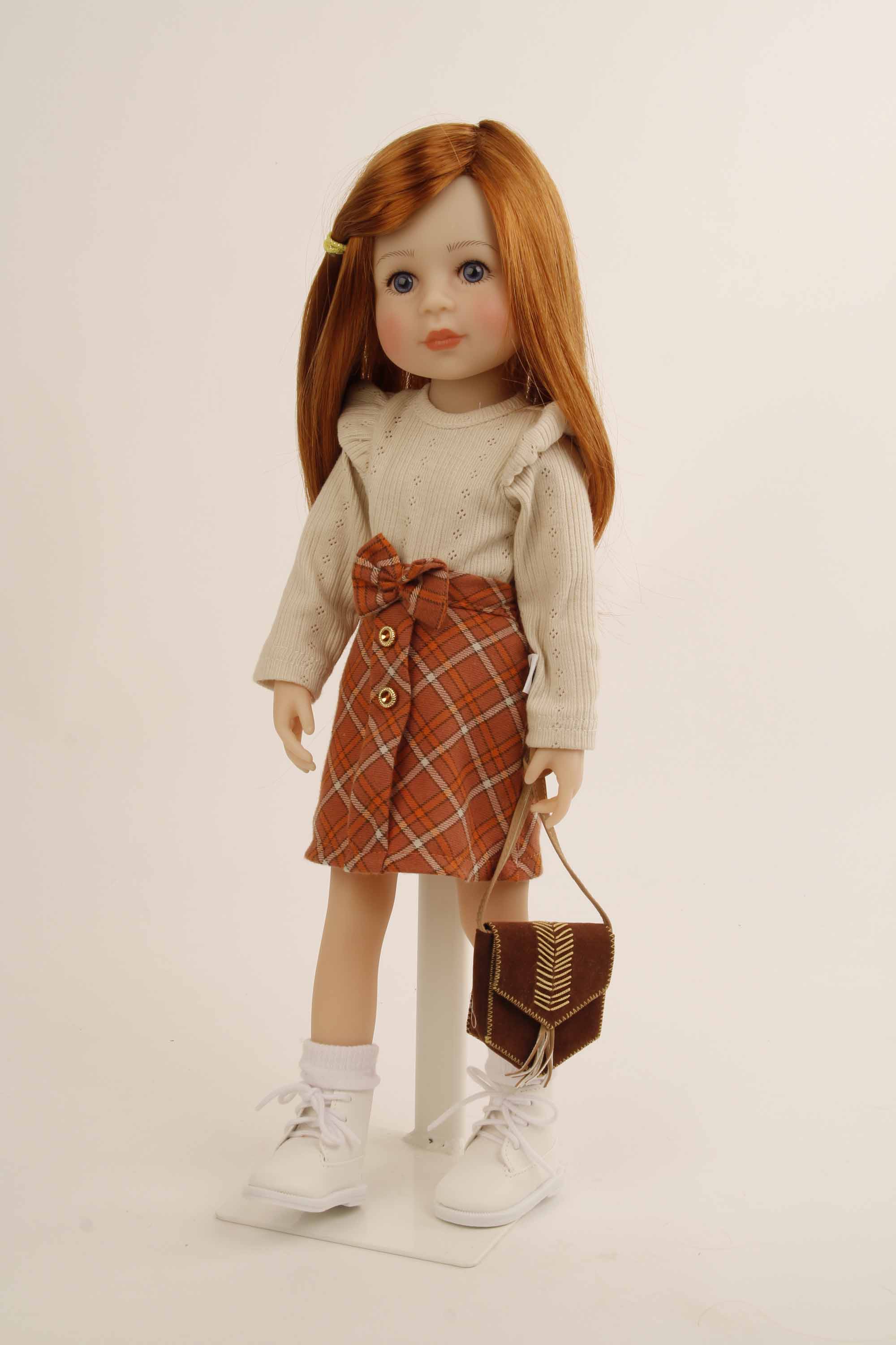 Stehpuppe Yella 46 cm rote Haare, Kleidung Karo
