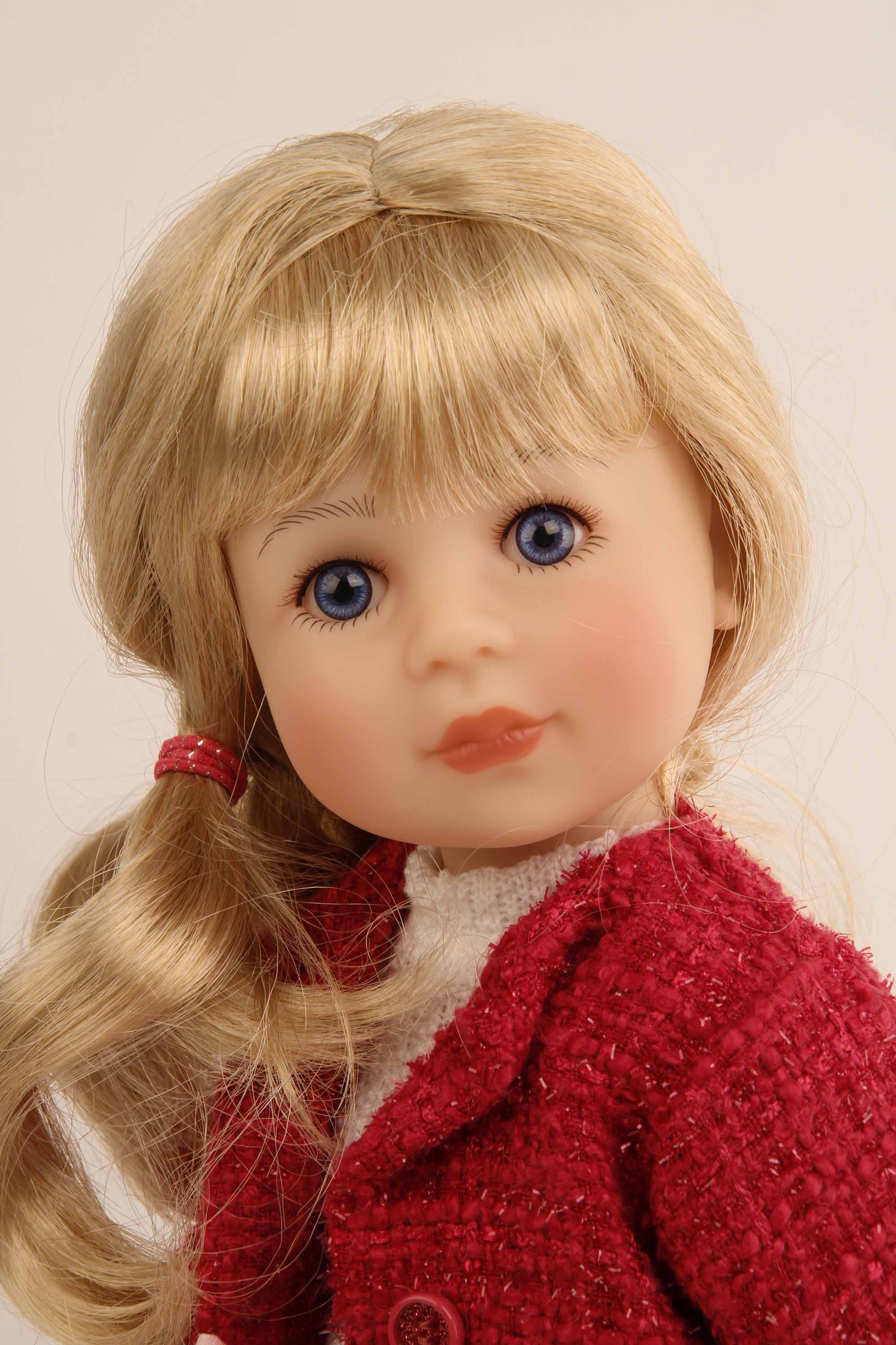 Stehpuppe Yella 46 cm blonde Haare, Kleidung rose/rot