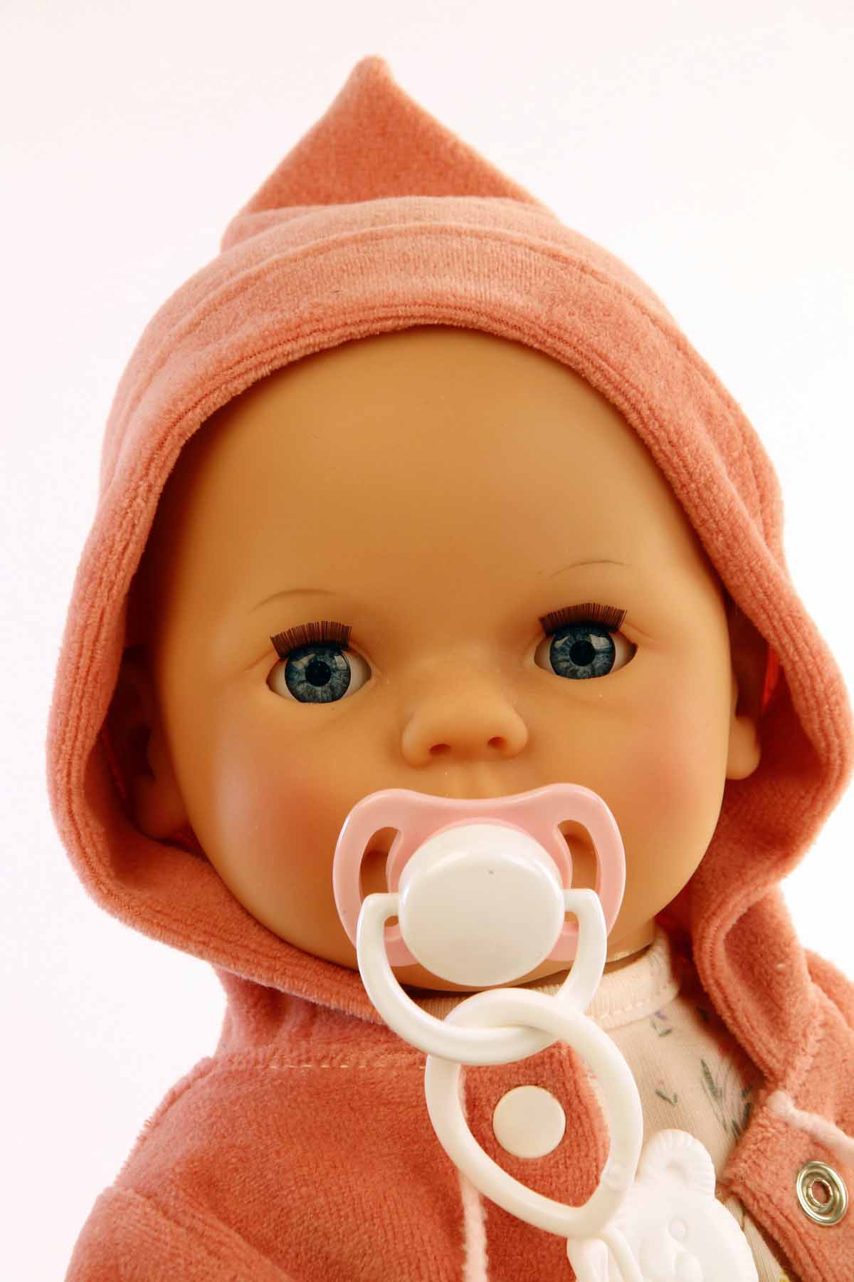 Hergestellt aus hochwertigem Vollvinyl, begeistert Lina mit funkelnden blauen Schlafaugen und einem charmanten, gemalten Haar. Im Set enthalten sind die Puppe, eine Flasche und ein Schnuller – alles, was Ihr Kind für fantasievolles Spielen benötigt.Lina ist stolz darauf, „Made in Germany“ zu sein und wird in unserer Manufaktur in Rauenstein mit viel Liebe zum Detail gefertigt. Sie trägt moderne Spielkleidung in den sanften Farben Weiß, Rosa und Grün die bei 30 Grad per Hand waschbar ist. Bitte beachten Sie, dass die Puppe nicht wasserdicht ist und daher nicht gebadet werden kann.