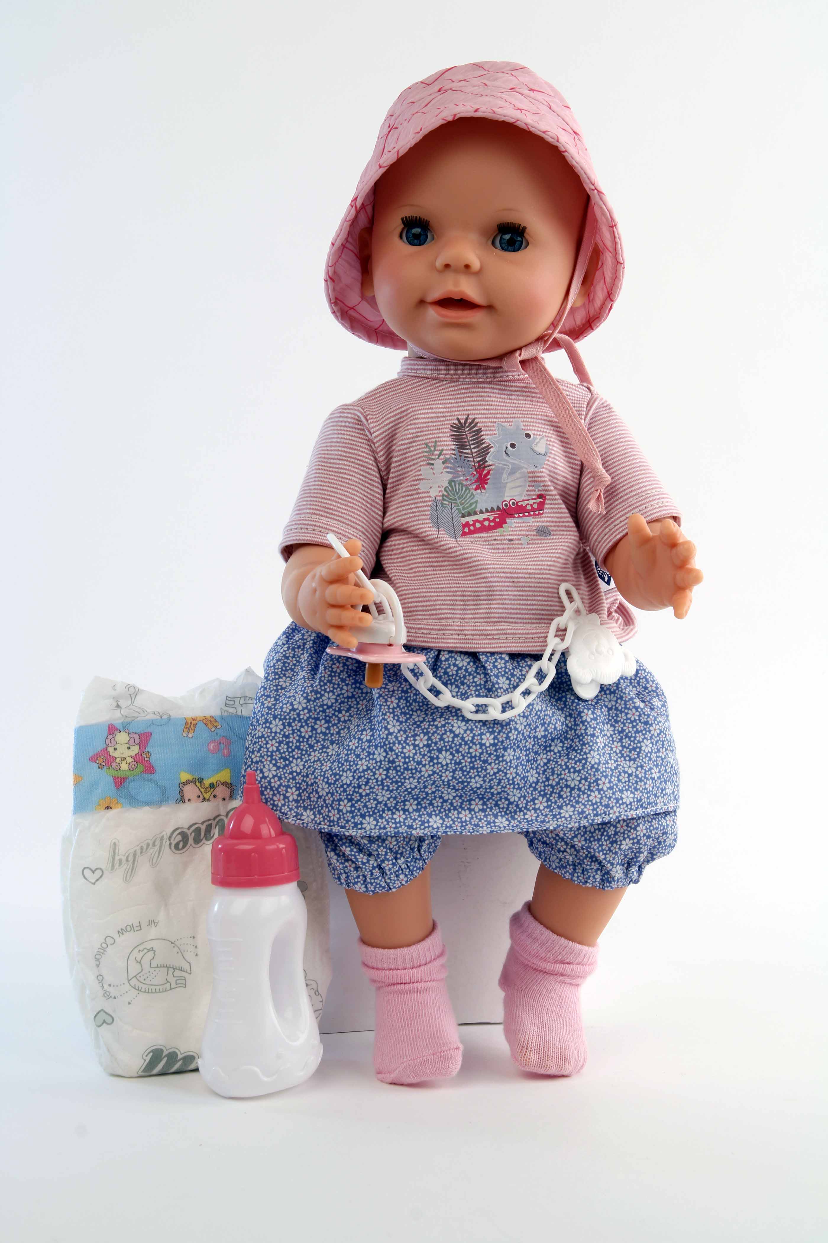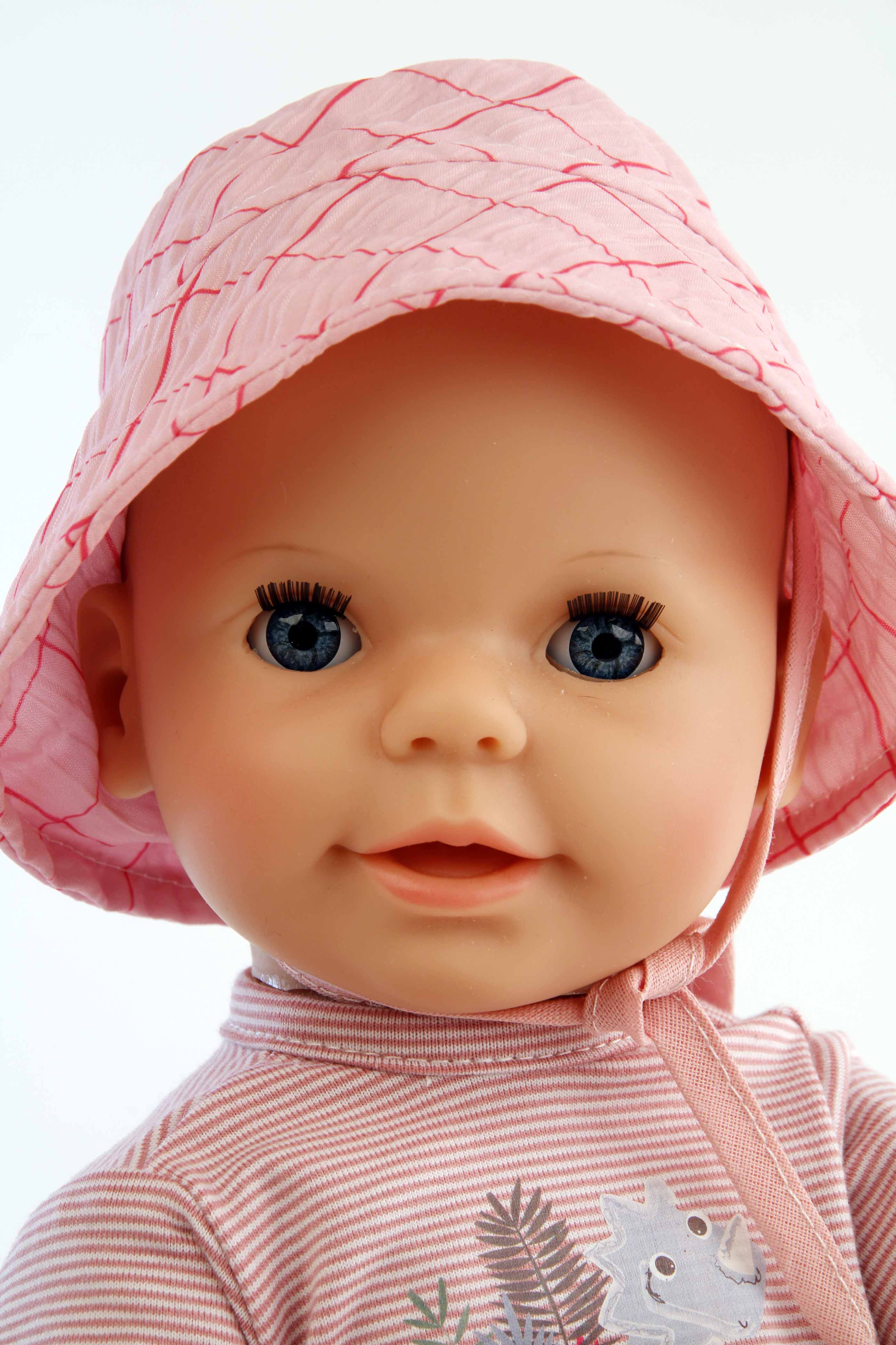 Trink + Näßbaby "Lina" 40 cm mit Malhaar und blauen Schlafaugen, Kleidung rose/bleu