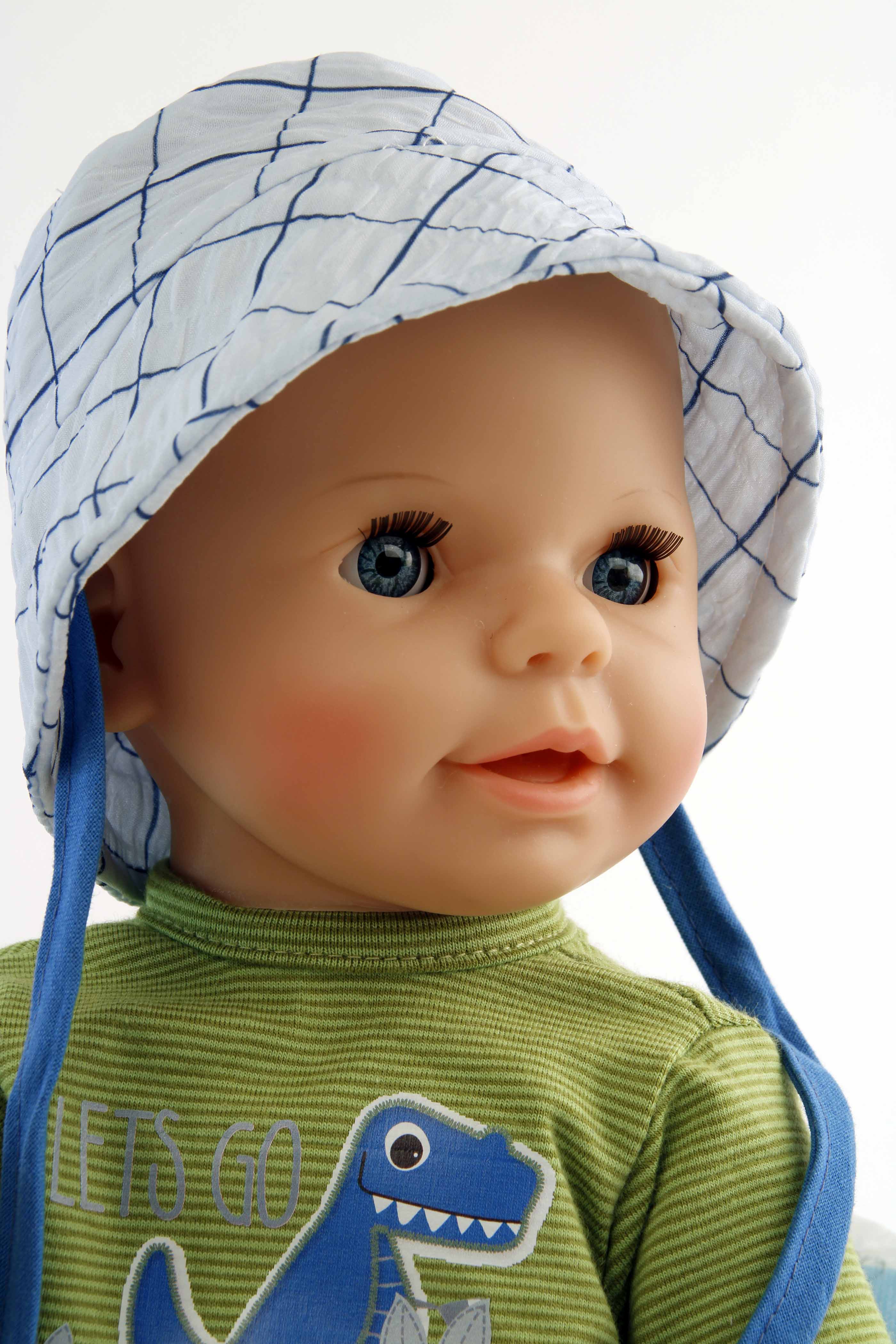 Produktinformationen "Trink + Näßbaby "Finn" 40 cm mit Malhaar und blauen Schlafaugen, Kleidung Dino"