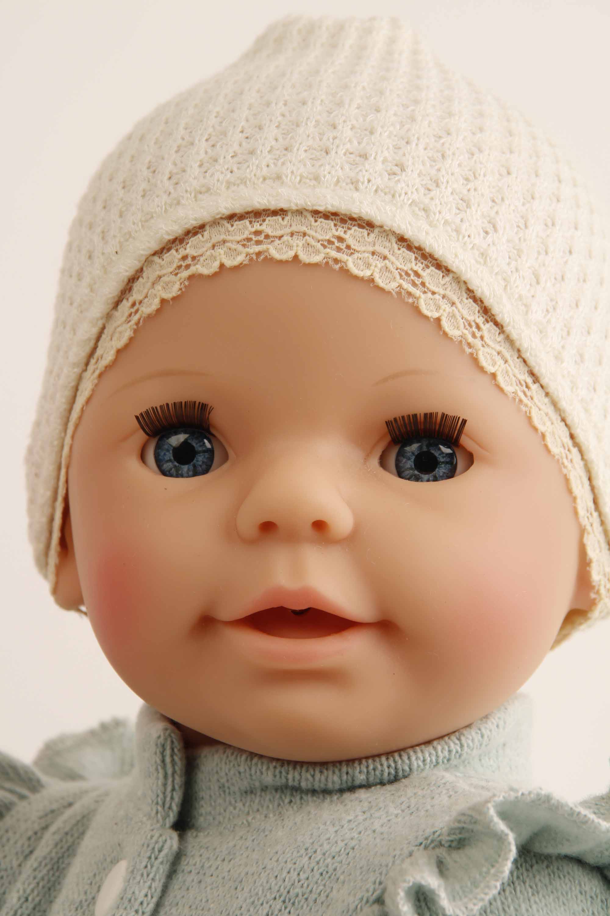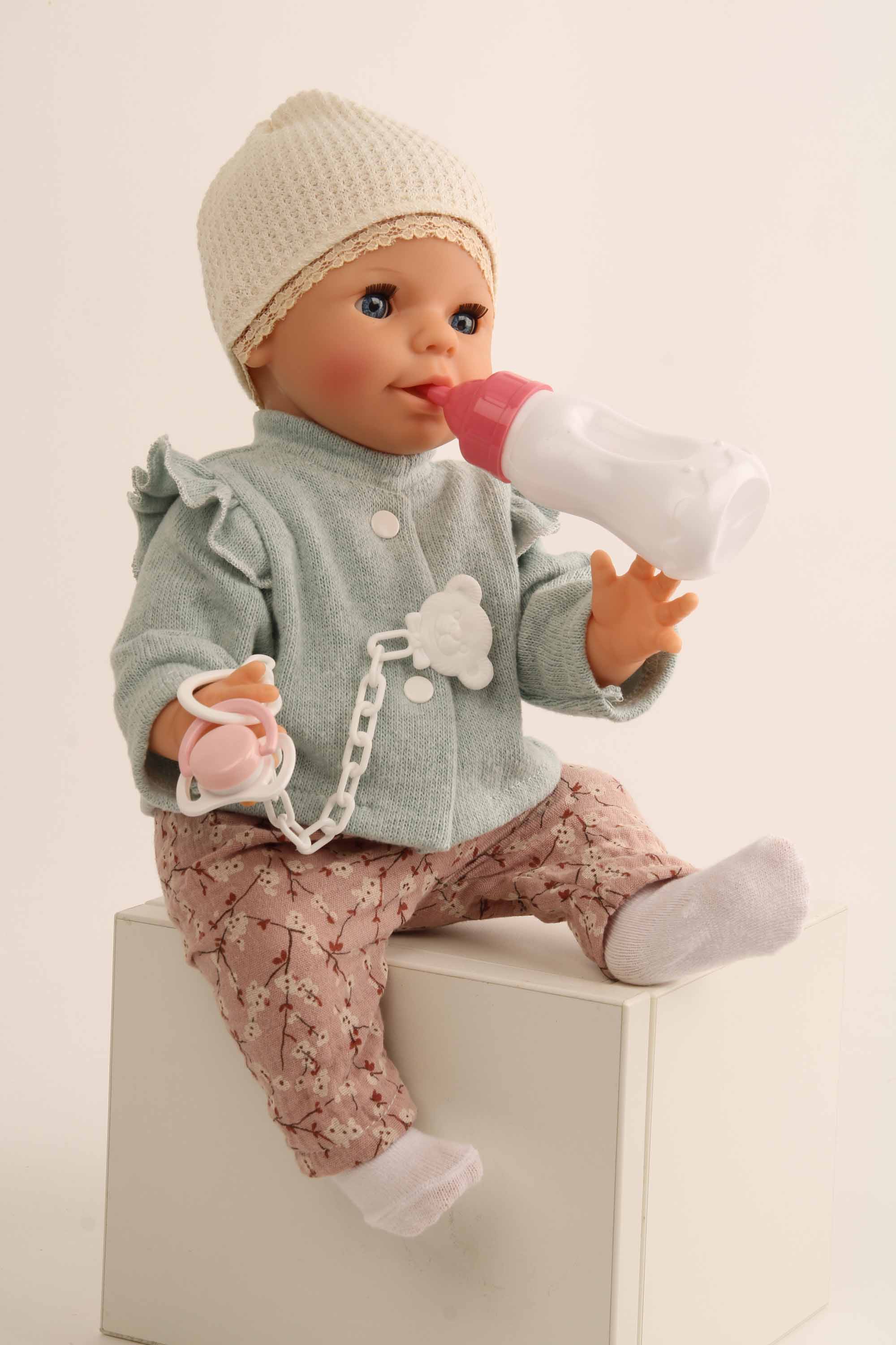 Trink + Näßbaby "Lina" 40 cm mit Malhaar und blauen Schlafaugen, Kleidung rose/mint