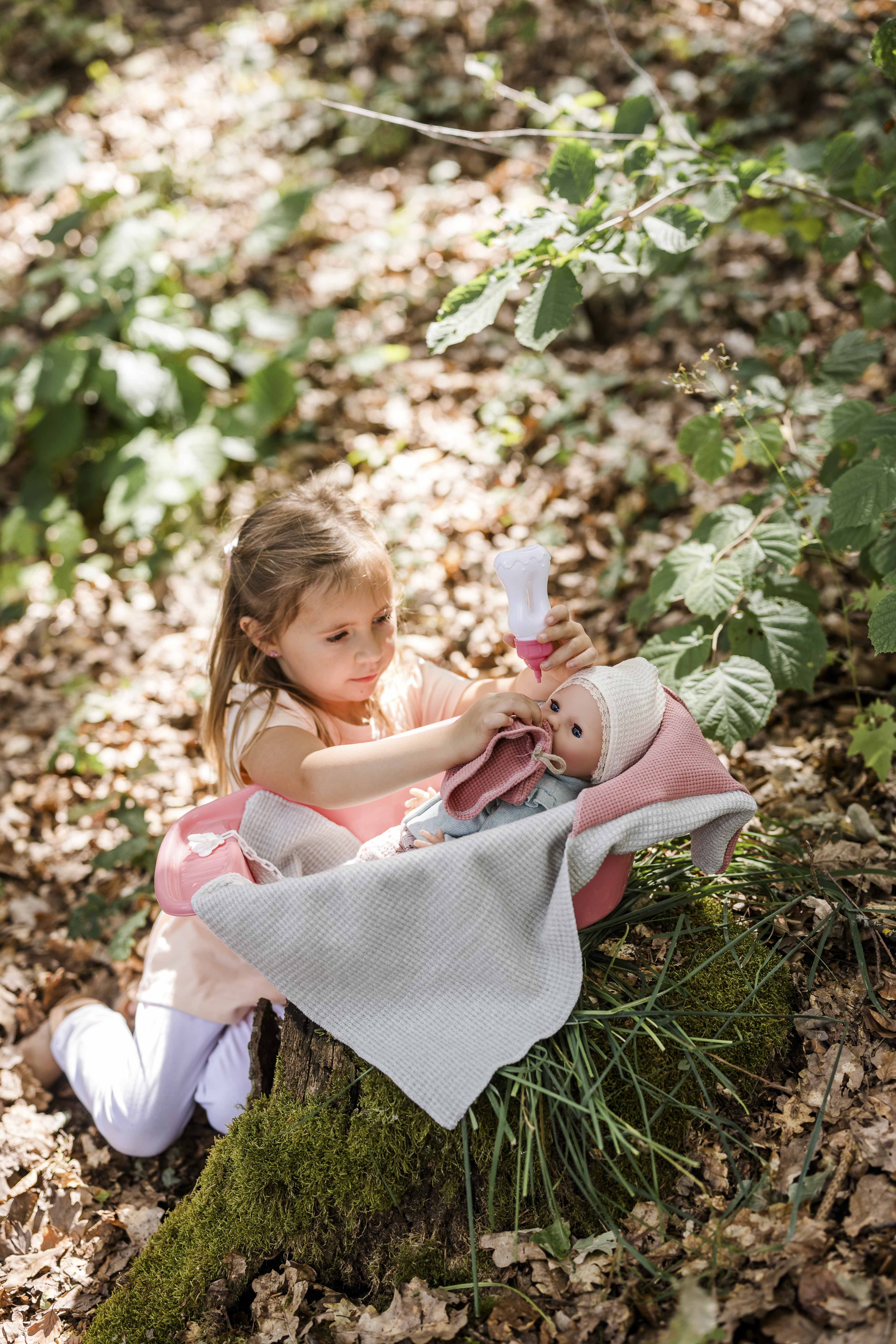 Lina ist nicht nur eine Puppe, sondern ein echter Spielkamerad, der wie ihre großen Geschwister gefüttert werden kann und sogar aufs Töpfchen geht! Für unterwegs hat sie alles dabei, was sie braucht: eine Windel und einen Schnuller, um Trost zu spenden.