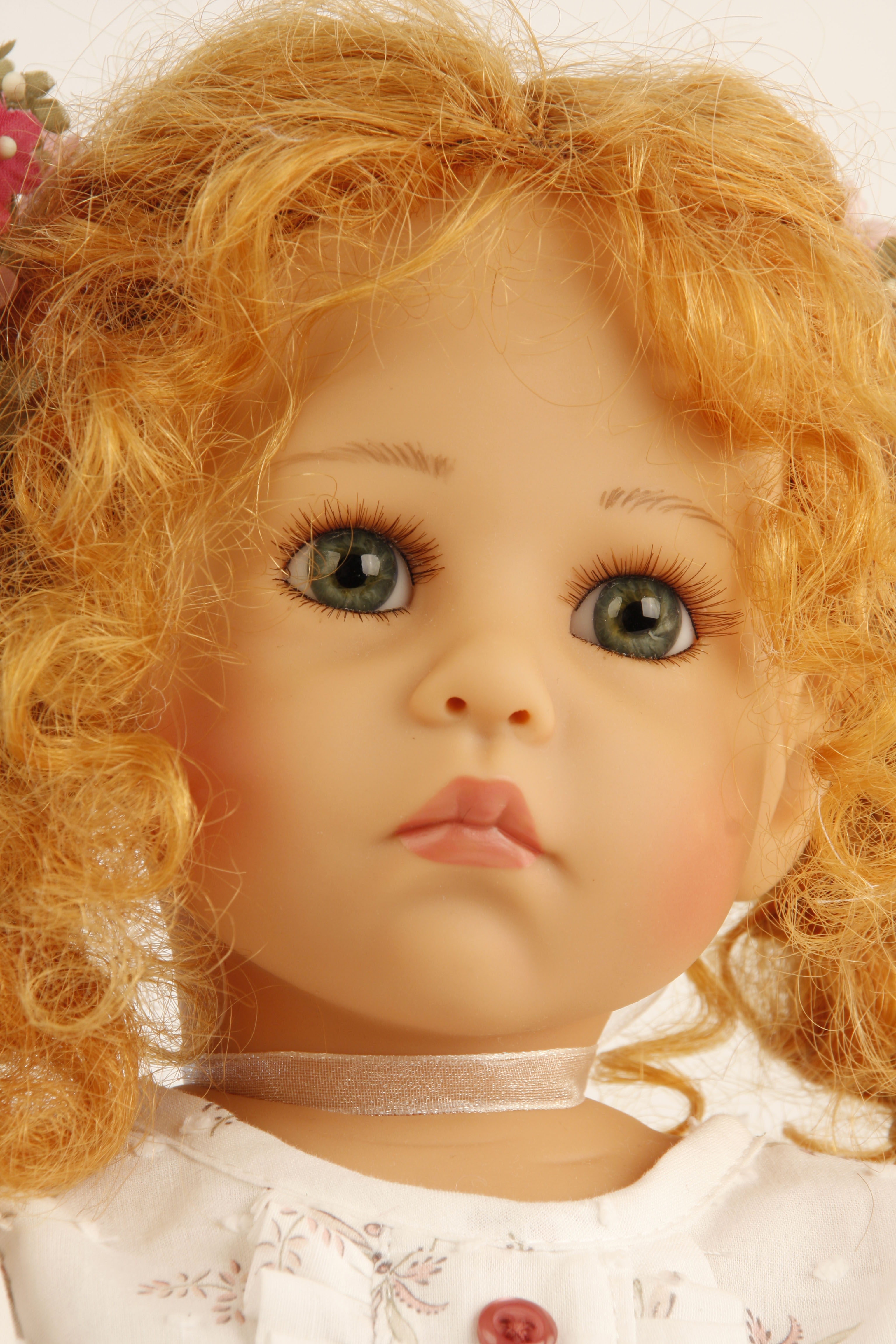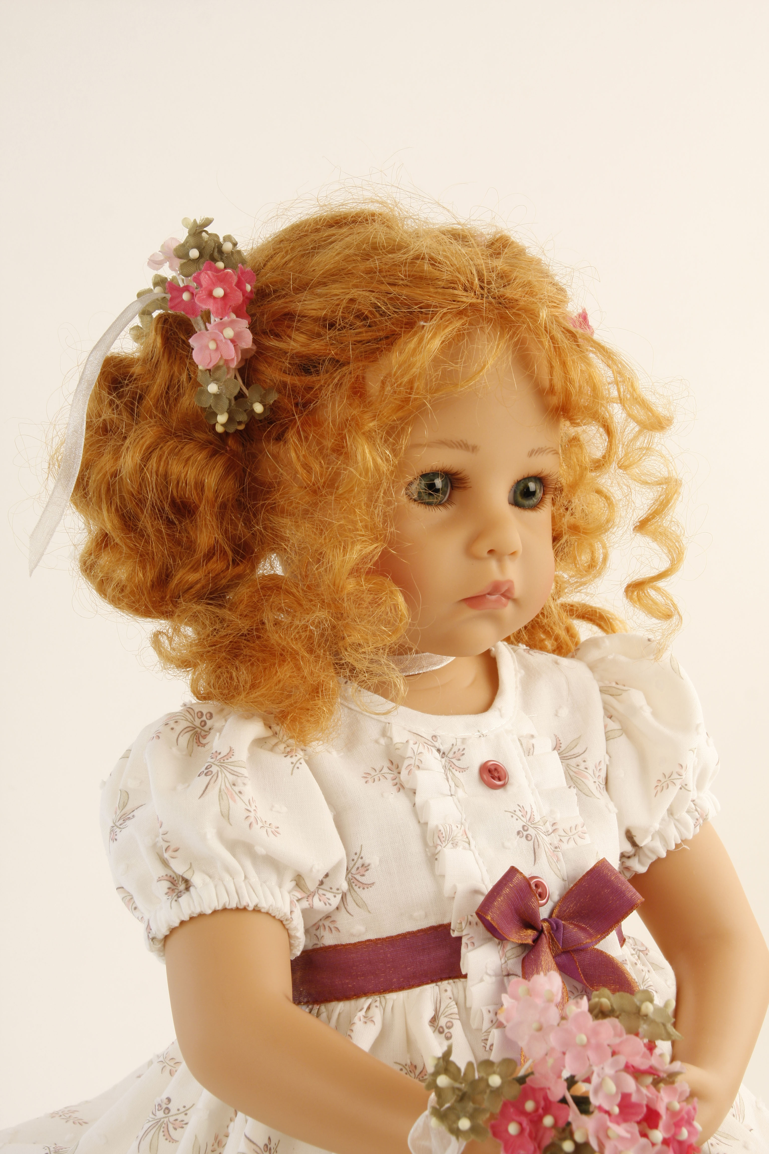 Puppe Elena sitzend 53 cm von Sybille Sauer rote Haare, Sommerkleid weiss