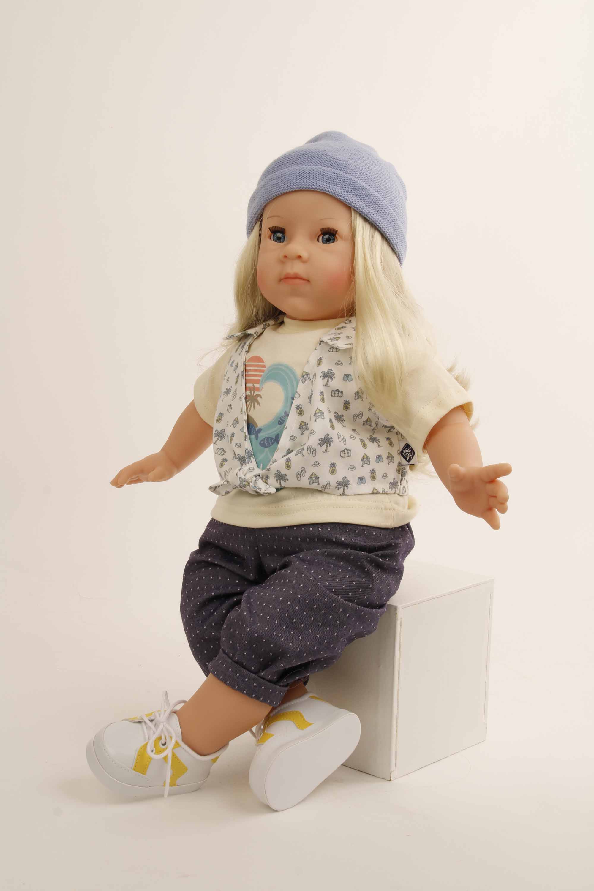 Produktinformationen "Puppe Elli 52 cm blonde Haare, blaue Schlafaugen, Kleidung blau/gelb Hawai"