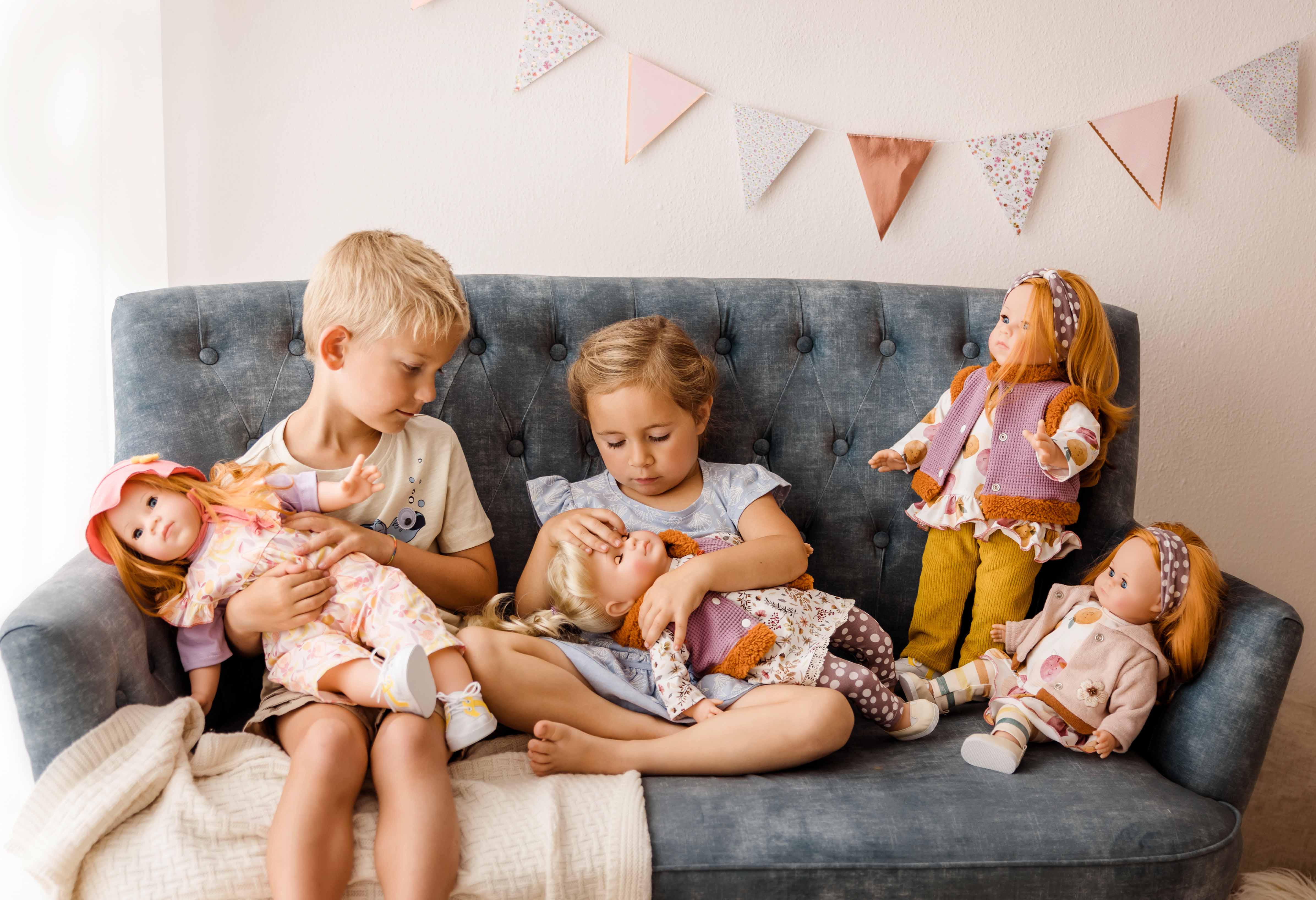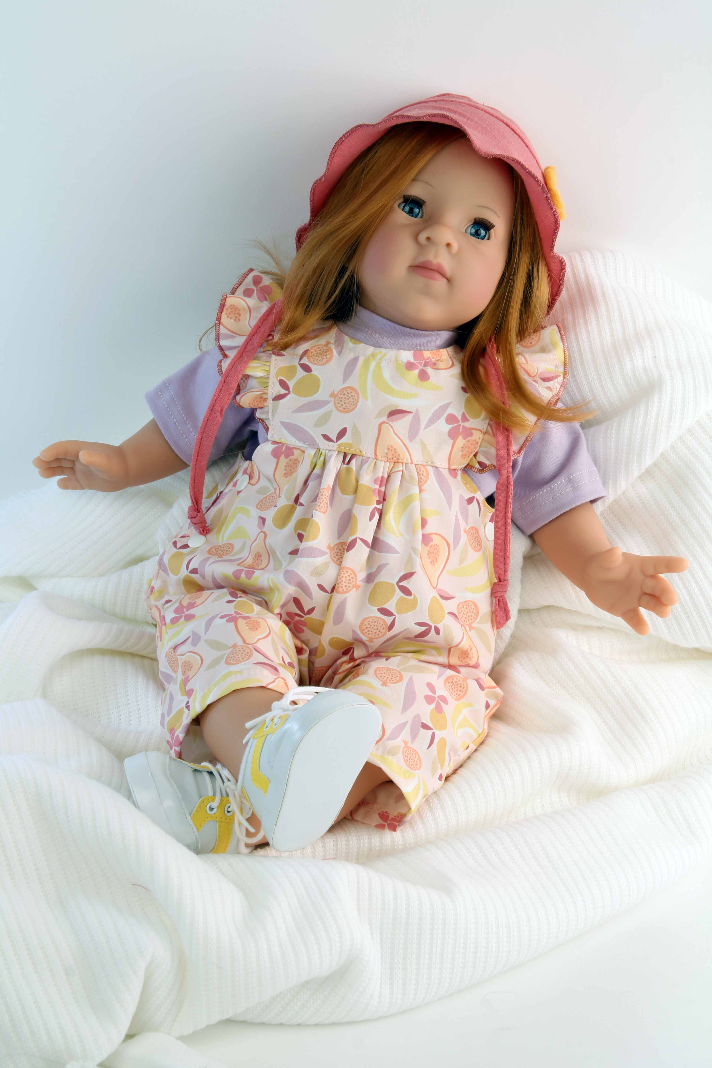 Our "Elli" size 52 with soft cuddly body by Elisabeth Lindner has sparkling sleeping eyes and combable, red, quilted hair. Head + arms + legs are made of high quality vinyl. The soft fabric body ensures a high degree of mobility. The dolls by Elisabeth Lindner are real children of today and you just have to love them. The doll wears an elaborately manufactured, modern play outfit, which can be washed at 30 degrees. This doll is manufactured in our doll factory in Rauenstein/Thuringia.